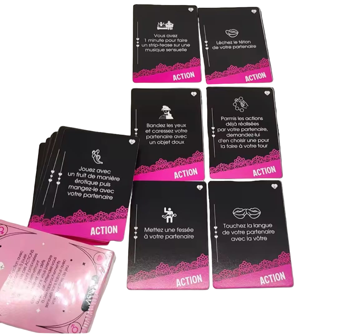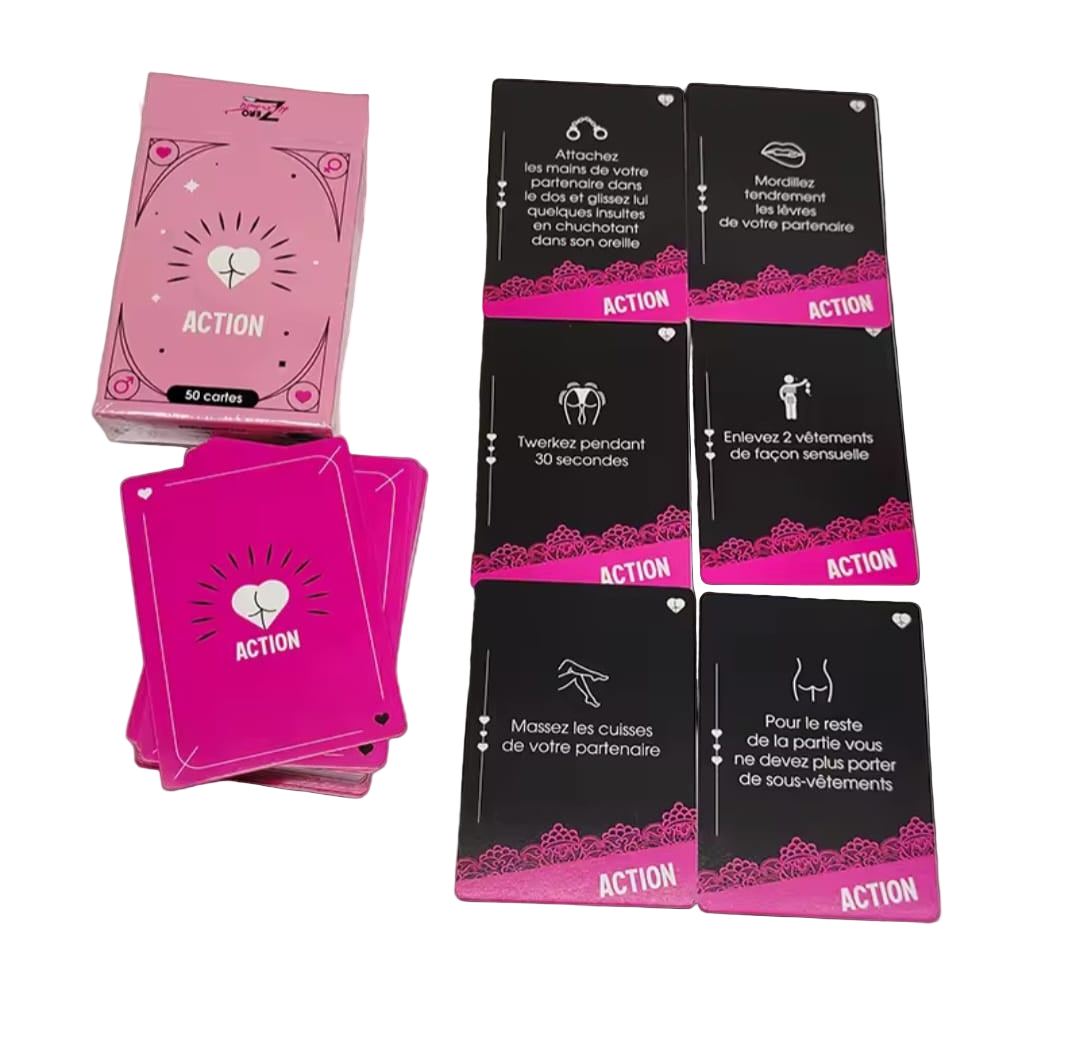 de 50 cartes de vérités coquines et 50 cartes actions érotiques